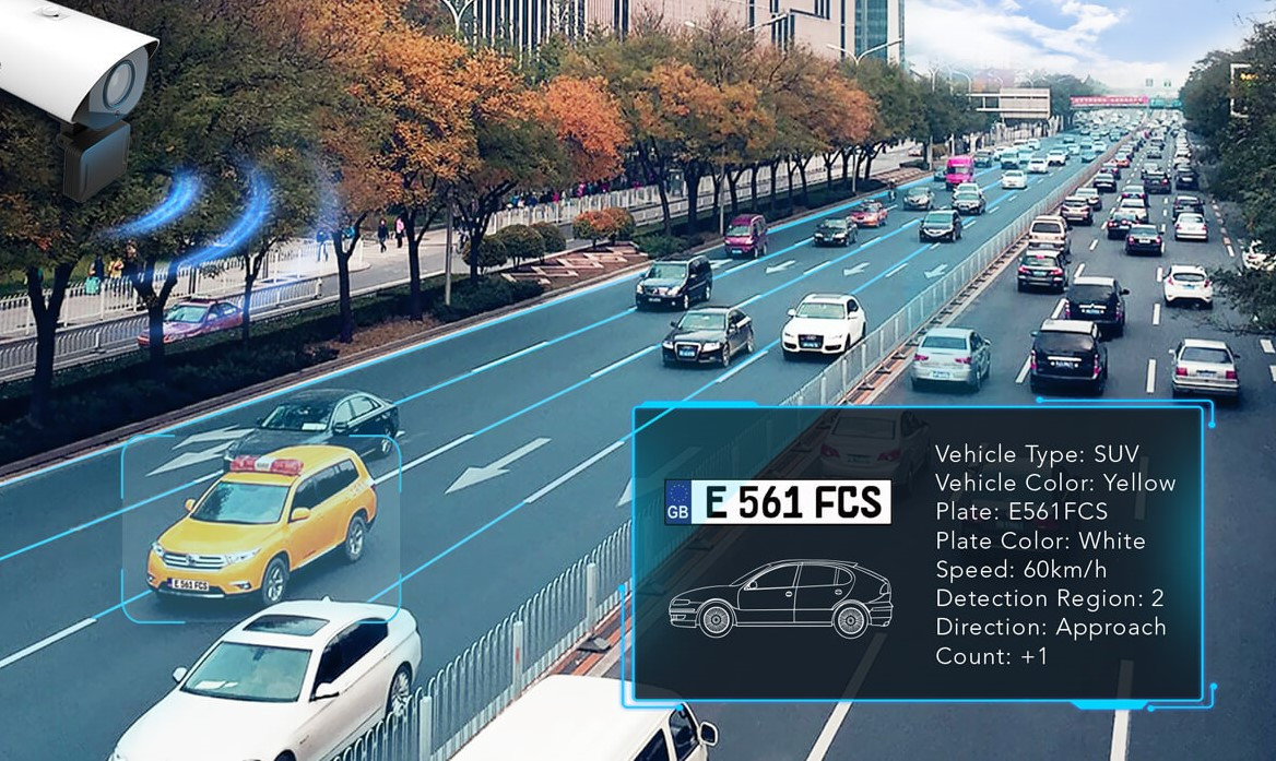 Nuestas cámaras de AI tienen la capacidad no sólo de leer el número de placas, también se puede llevar un control de las características y velocidad del hevículo.